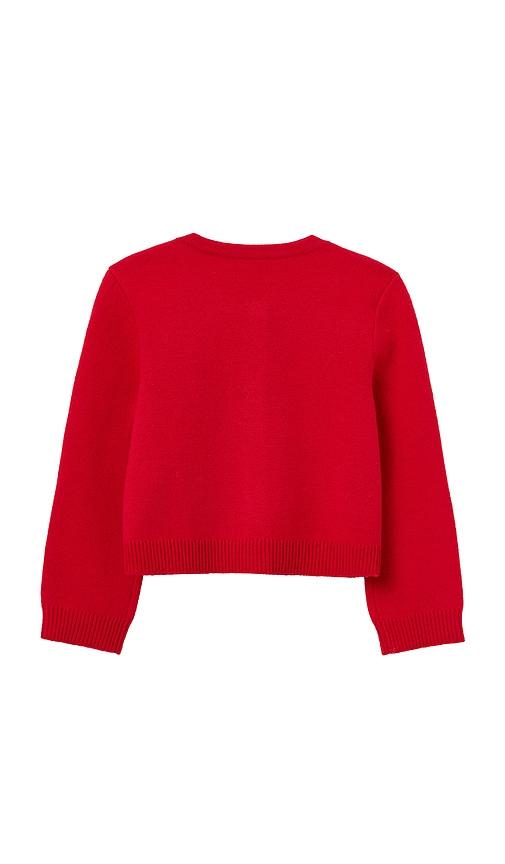 SELF-PORTRAIT KIDS COTTON FLOWER TRIM CARDIGAN IN RED.