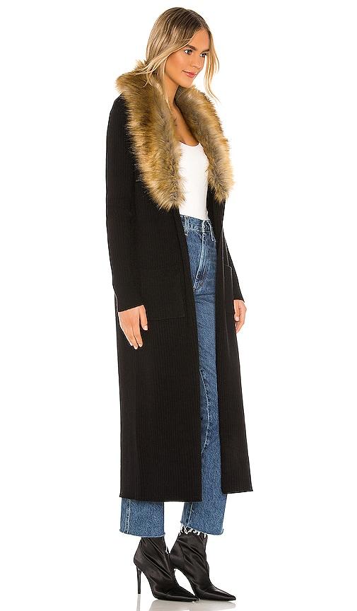 SHOW ME YOUR MUMU LOMBARDI LONG CARDIGAN WITH FAUX FUR TRIM IN BLACK.