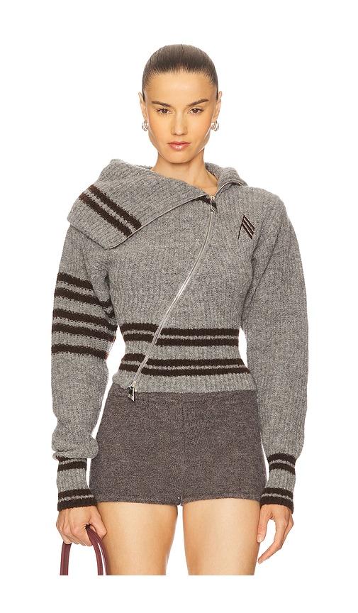 THE ATTICO GEOMETRIC CARDIGAN IN GREY.