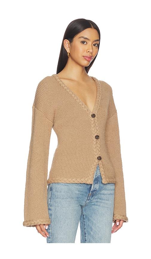 TULAROSA DELLA BRAIDED DETAIL CARDIGAN IN BROWN.