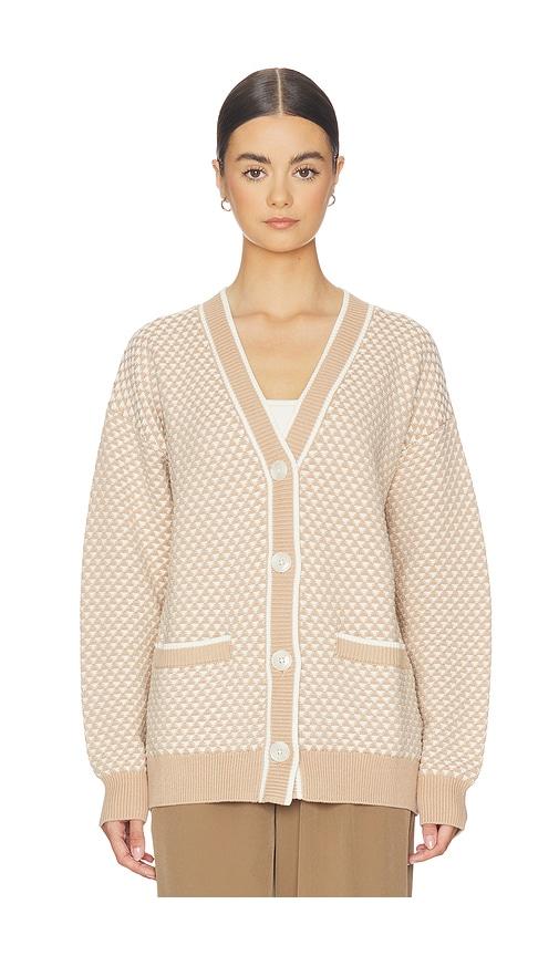 VARLEY TARRAN STITCH KNIT CARDIGAN IN TAUPE.