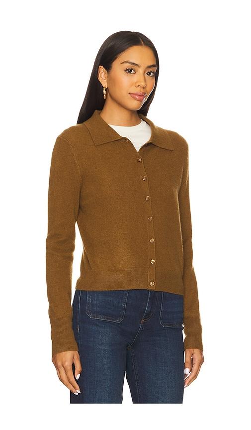 WHITE & WARREN CASHMERE COLLARED CARDIGAN IN BROWN.
