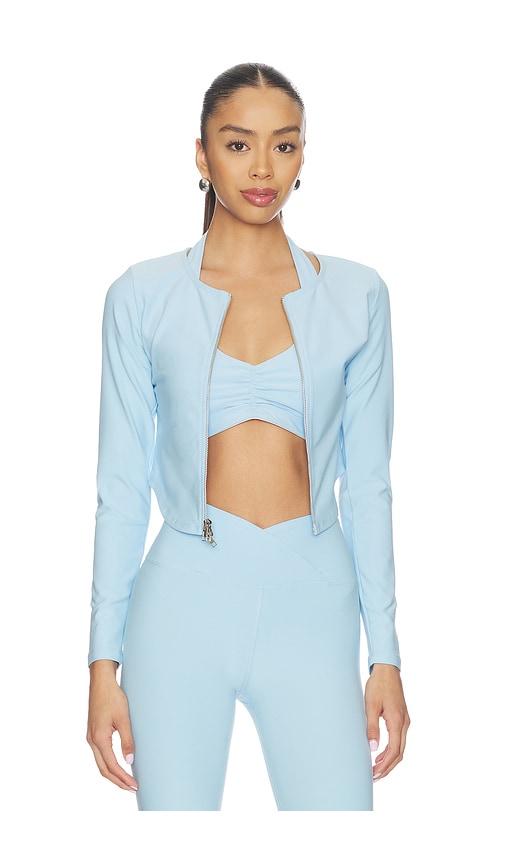 YEAR OF OURS STRETCH ZIP UP CARDIGAN IN BABY BLUE.