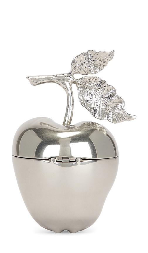 CULT GAIA MELA CLUTCH IN METALLIC SILVER.