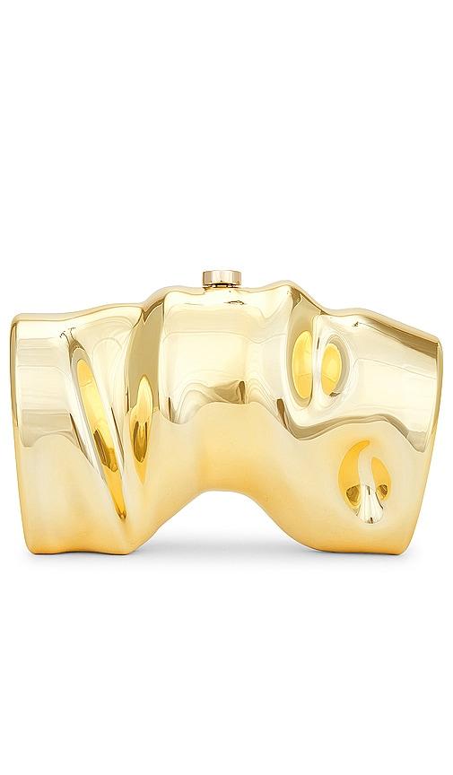 CULT GAIA SCRUNCH CLUTCH IN METALLIC GOLD.