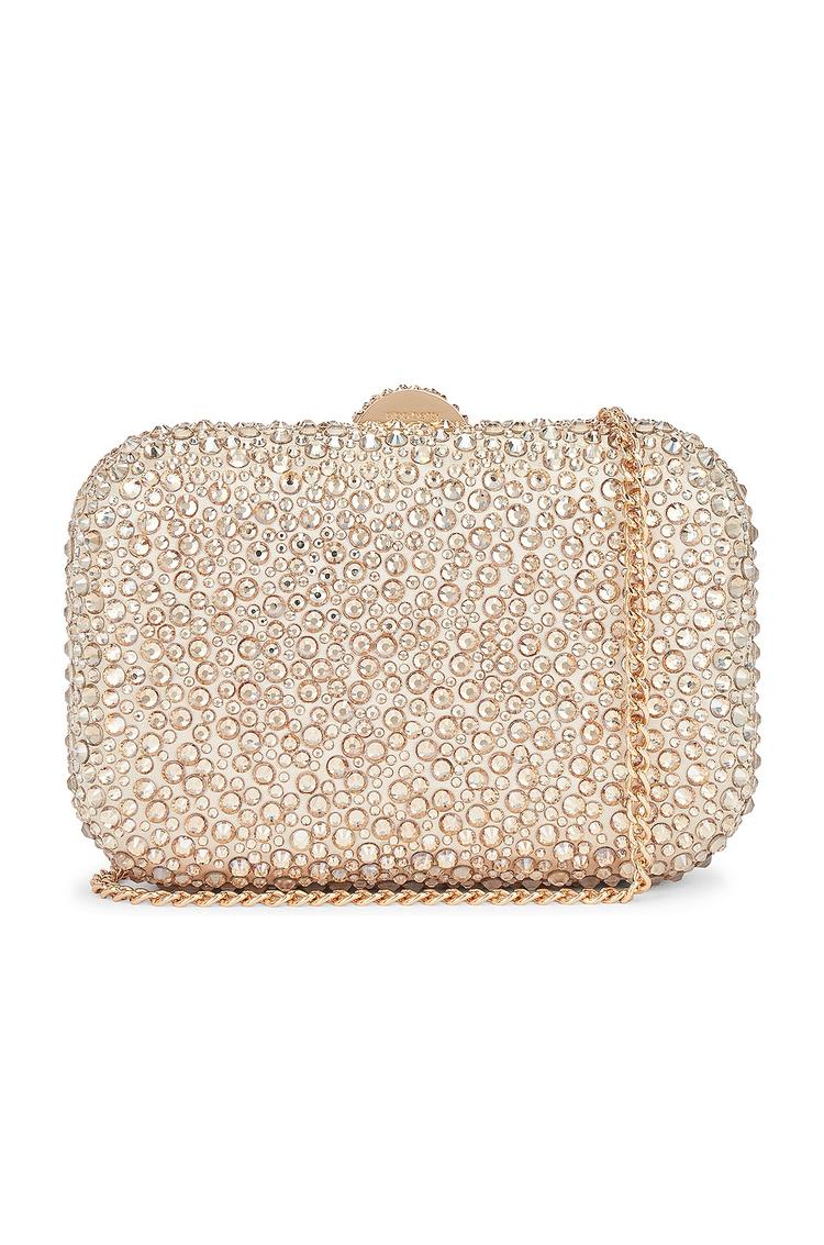 Elevate evening elegance with Olga Berg’s Casey Hot Fix Encrusted Clutch. This box-clutch exterior sparkles in crystal embellishments set over satin, catching light with every step. A gold-tone top clasp secures a single main compartment, plus a convenient interior slip pocket. The detachable gold-tone chain strap lets you switch from a handheld statement to a shoulder or crossbody style in seconds. Measuring approximately 18 cm wide by 13 cm high by 4 cm deep, and finished with a satin logo lining, this glam clutch blends refined craftsmanship with party-ready drama for formal events or special nights out.
