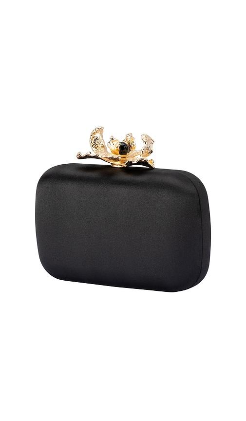 OLGA BERG ADELE ORCHID LOCK CLUTCH IN BLACK.