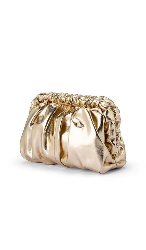 OLGA BERG BETTY METALLIC CLUTCH IN METALLIC GOLD.