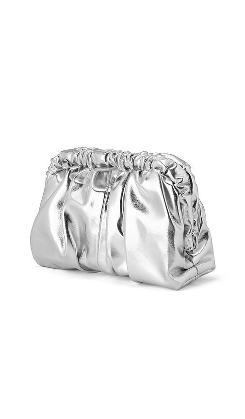 OLGA BERG BETTY METALLIC CLUTCH IN METALLIC SILVER.