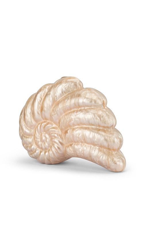 OLGA BERG INDI SHELL CLUTCH IN TAN.
