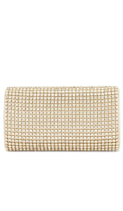 OLGA BERG MARIANA CRYSTAL CLUTCH IN METALLIC NEUTRAL.