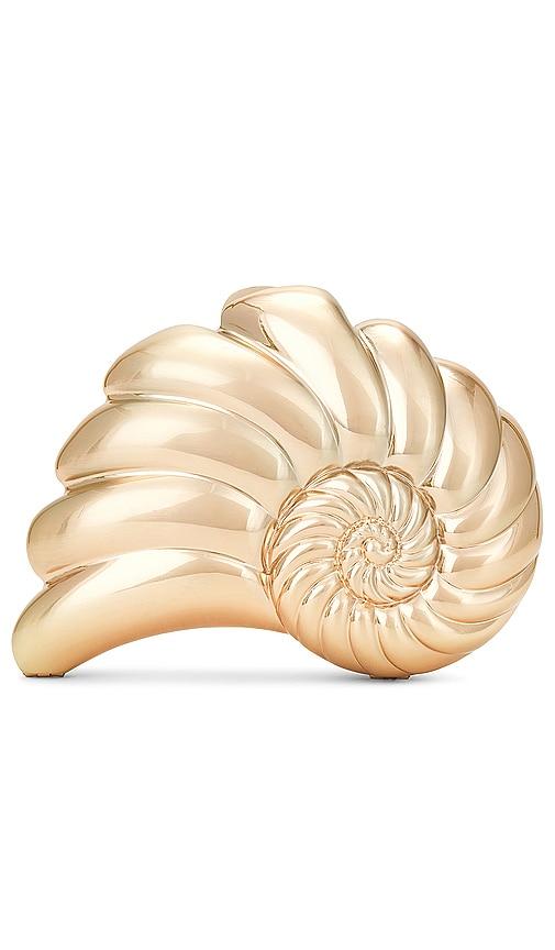 OLGA BERG SHELLA CLUTCH IN METALLIC GOLD.