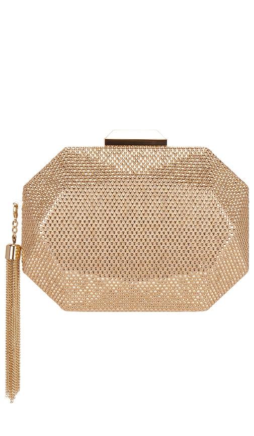 OLGA BERG TILLY HOTFIX CLUTCH IN METALLIC GOLD.