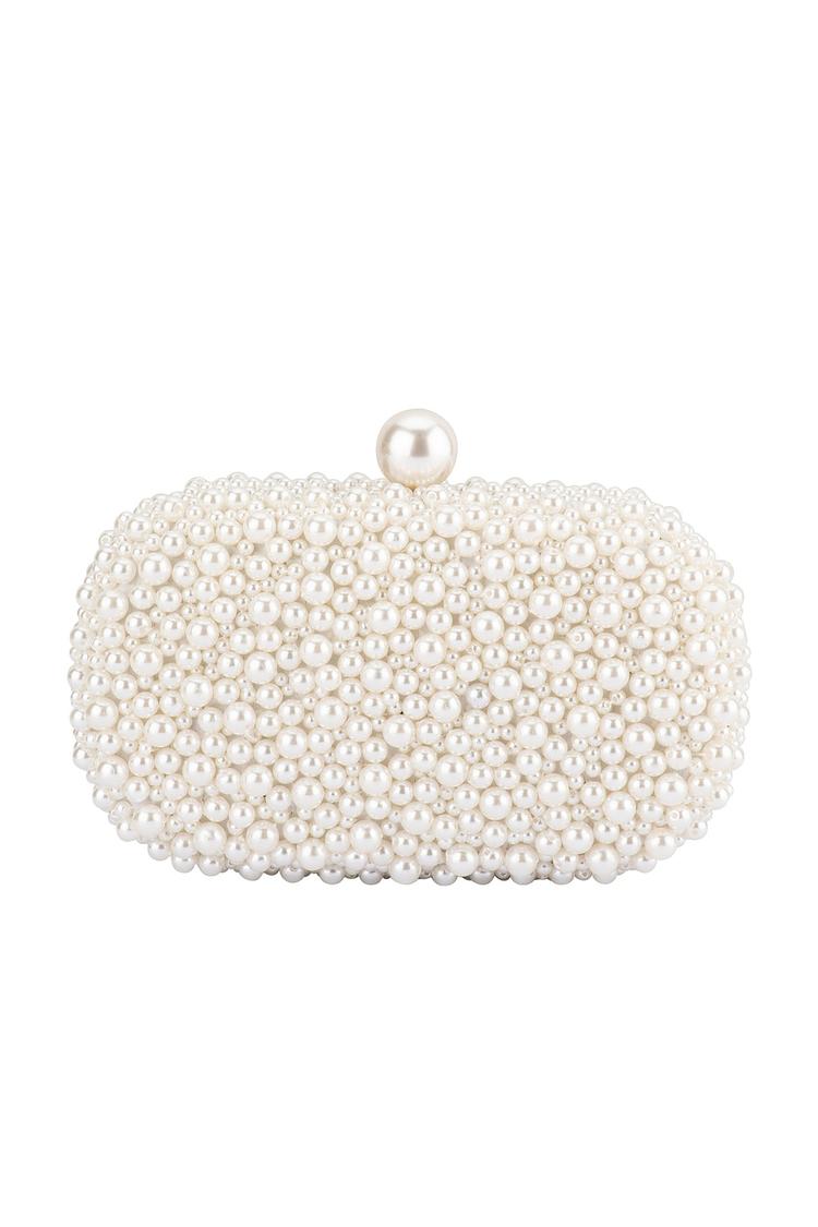box clutch with faux pearl exterior