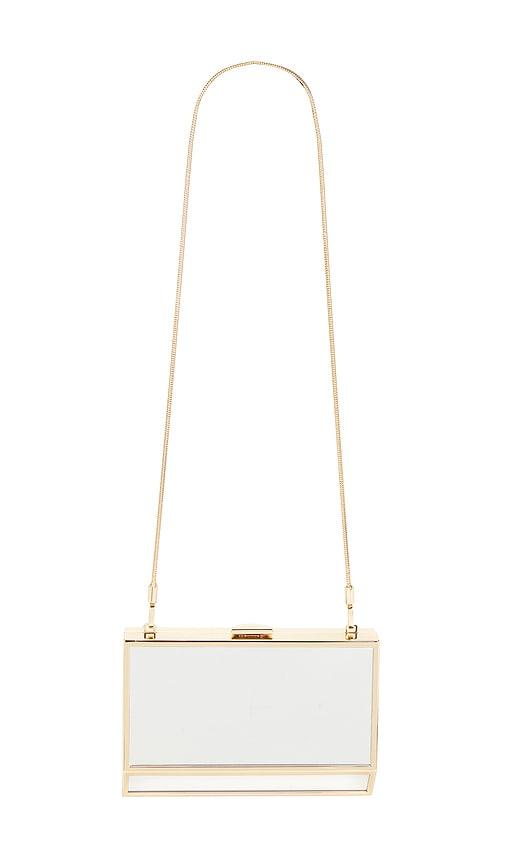 SIMKHAI MADDOX MIRROR CLUTCH IN METALLIC GOLD.