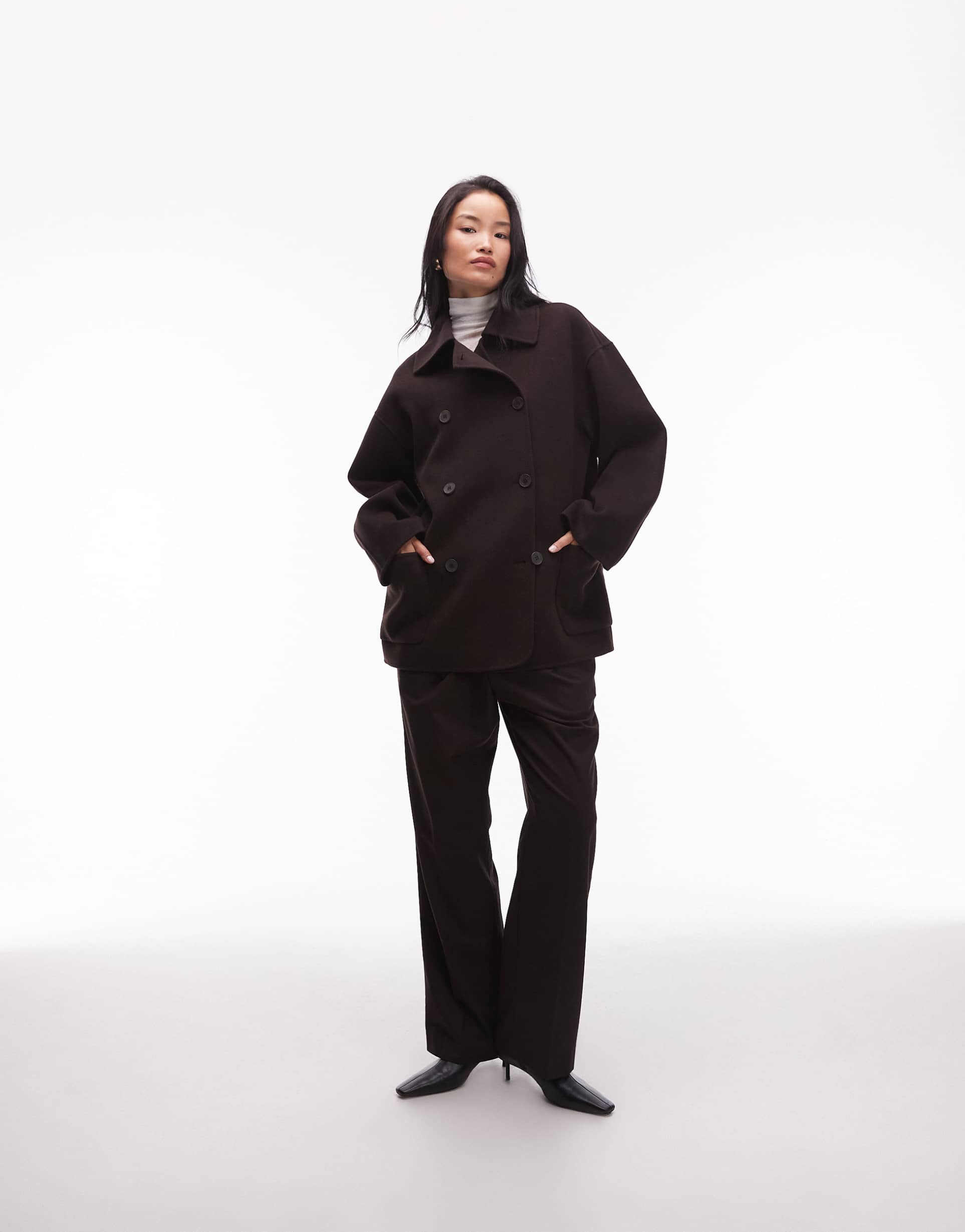& OTHER STORIES DOUBLE BREASTED WOOL MIX COAT IN BROWN