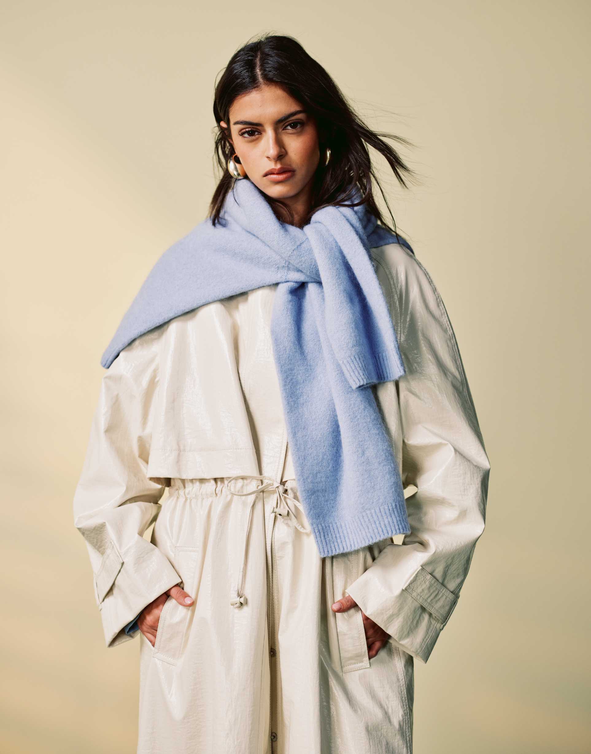 & OTHER STORIES VINYL TRENCH COAT WITH DRAWSTRING WAIST IN CREAM