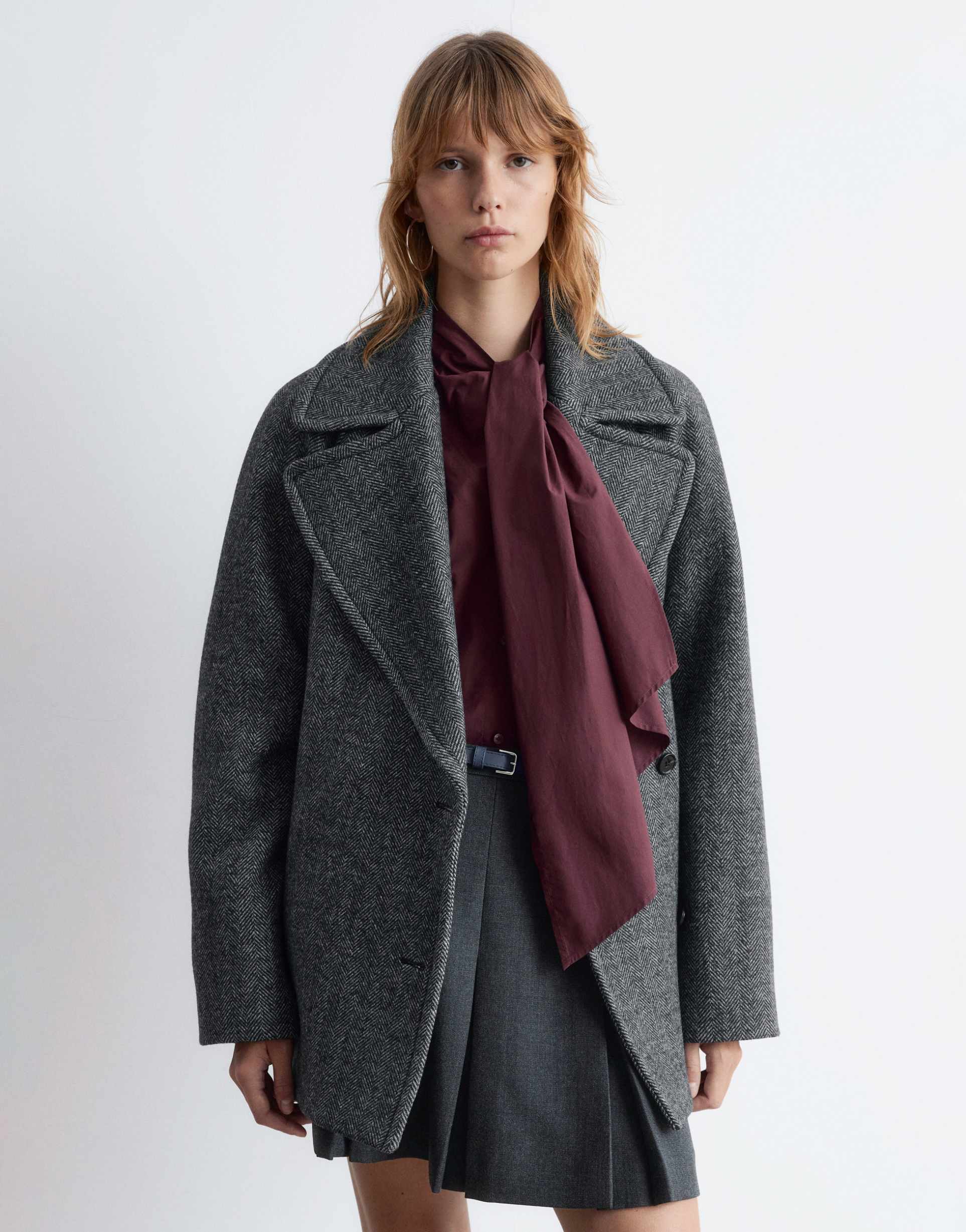 & OTHER STORIES WOOL HERRINGBONE SHORT COAT IN BLACK