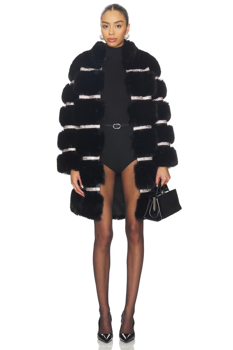 This Adrienne Landau Diamond Luxe Overcoat offers a chic and sophisticated thigh-length silhouette crafted from plush faux fur polyester fabric. Featuring a stand collar and long regular sleeves, it fastens with elegant hidden hook closures and showcases striking rhinestone trim across the coat for added glamour. Fully lined with polyester, this regular fit coat includes hidden side seam pockets for practicality. Ideal for winter and autumn evenings, it elevates casual, cocktail, and night out occasions with luxurious texture and sparkling detail.