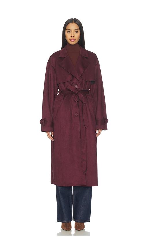 ALL THE WAYS MOXIE FAUX SUEDE COAT IN WINE.