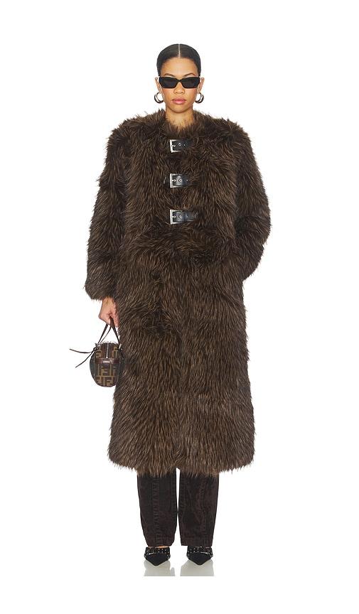 APPARIS NOLWEN FOX MAXI COAT IN BROWN.