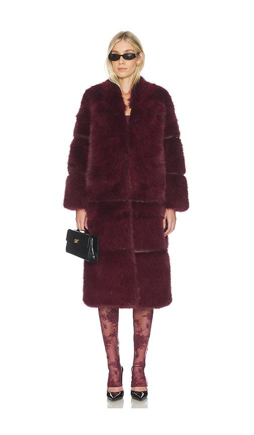 APPARIS SYLKE SABLE COAT IN BURGUNDY.