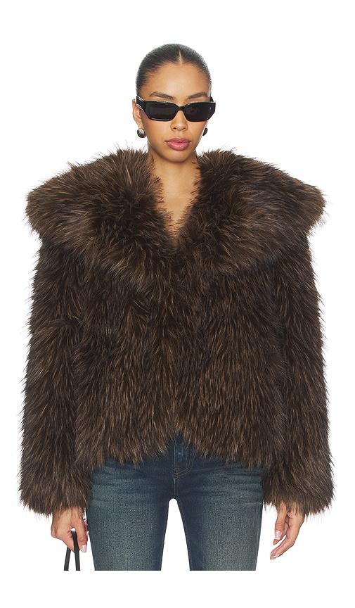 APPARIS YARA FOX COAT IN BROWN.
