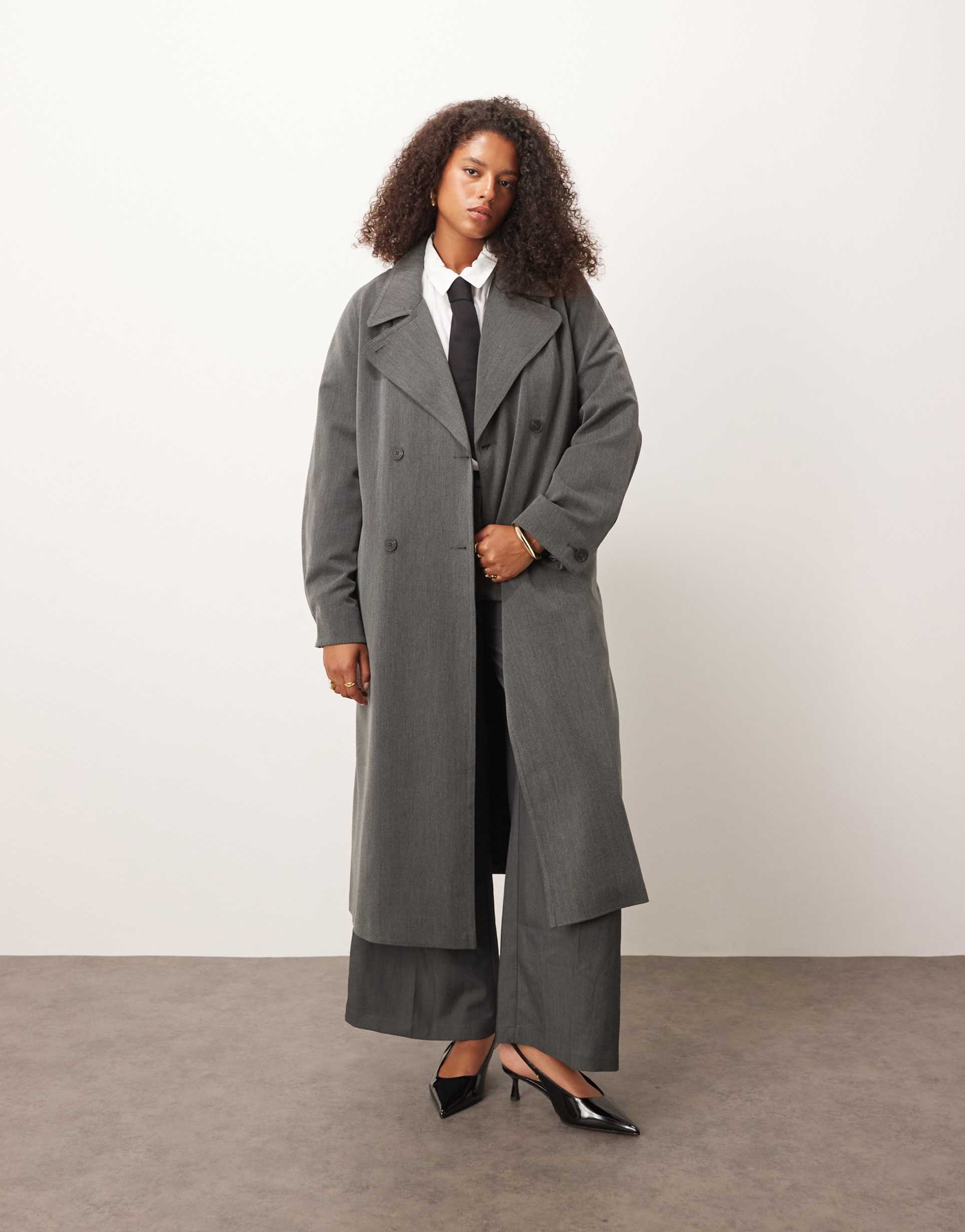 ASOS DESIGN CURVE SOFT TAILORED TRENCH IN CHARCOAL