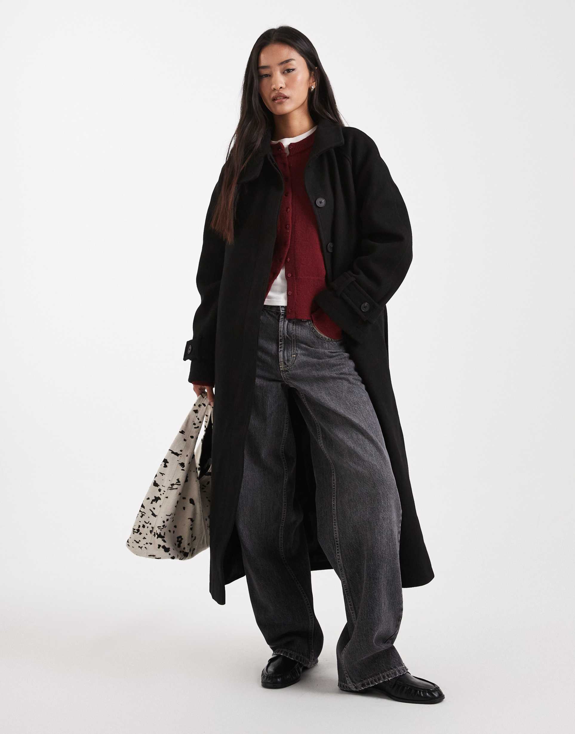 ASOS DESIGN FUNNEL NECK LONGLINE FORMAL TRENCH COAT IN BLACK