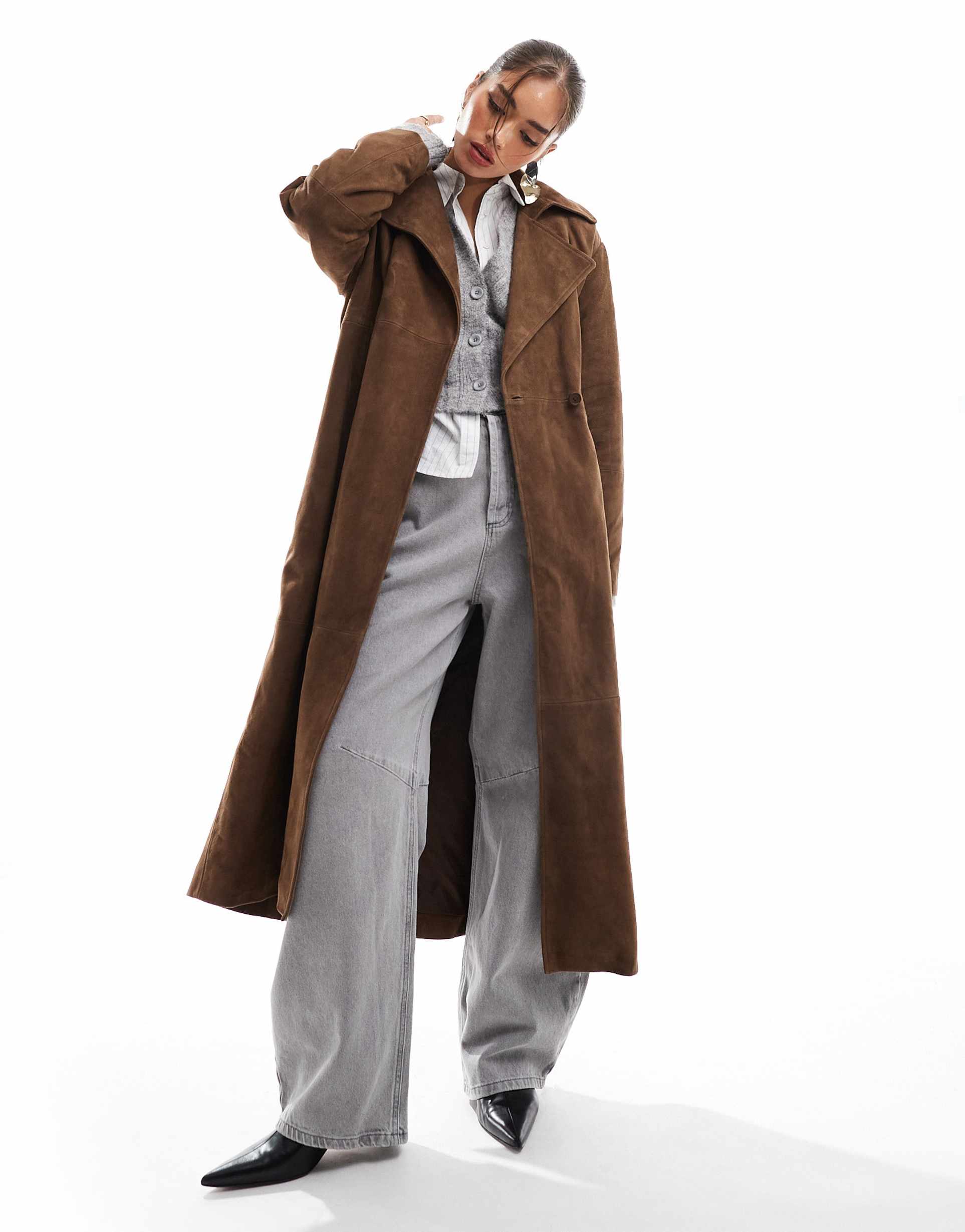 longline suede coat for autumn