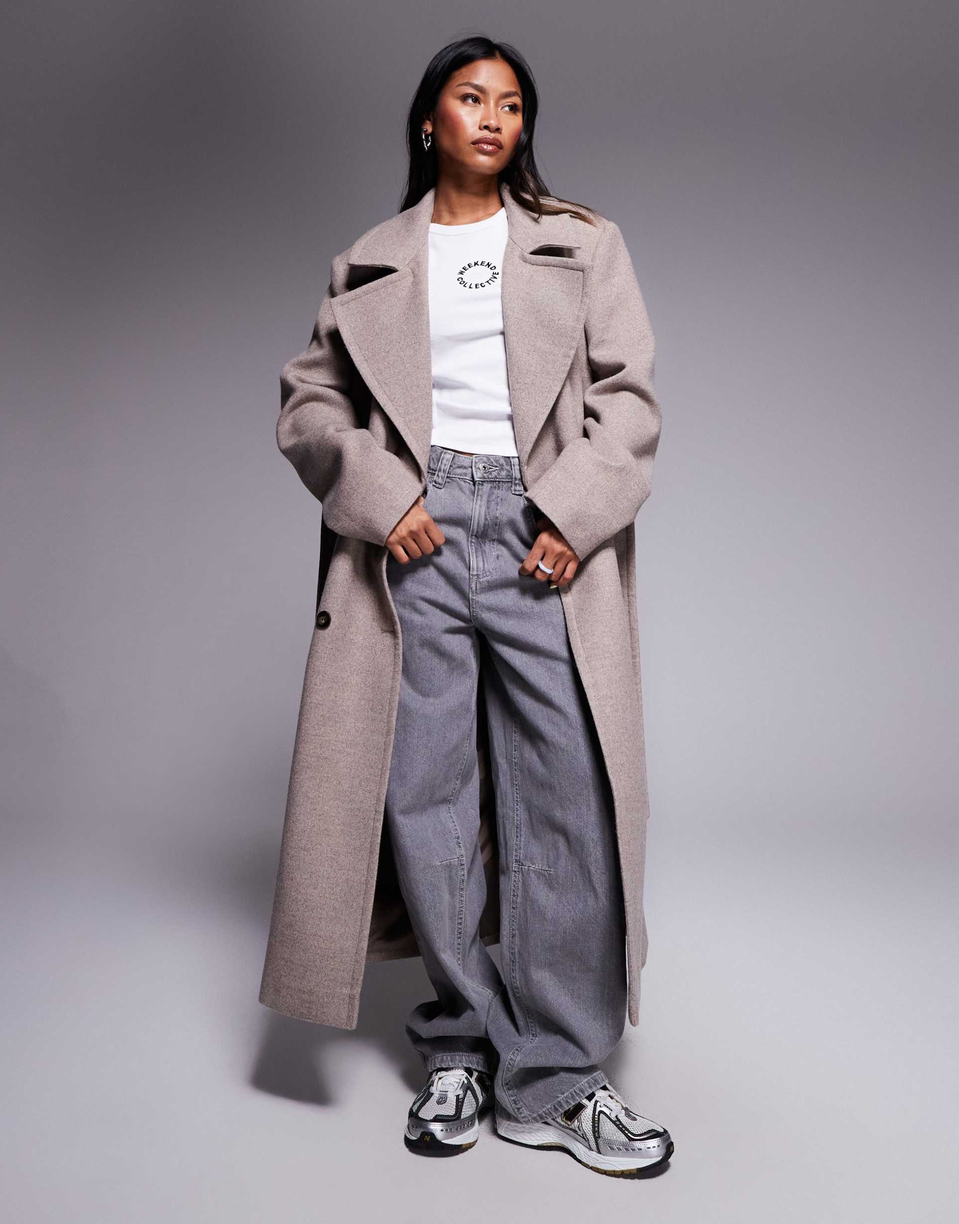 WEEKEND COLLECTIVE TWILL BELTED MAXI COAT IN OATMEAL