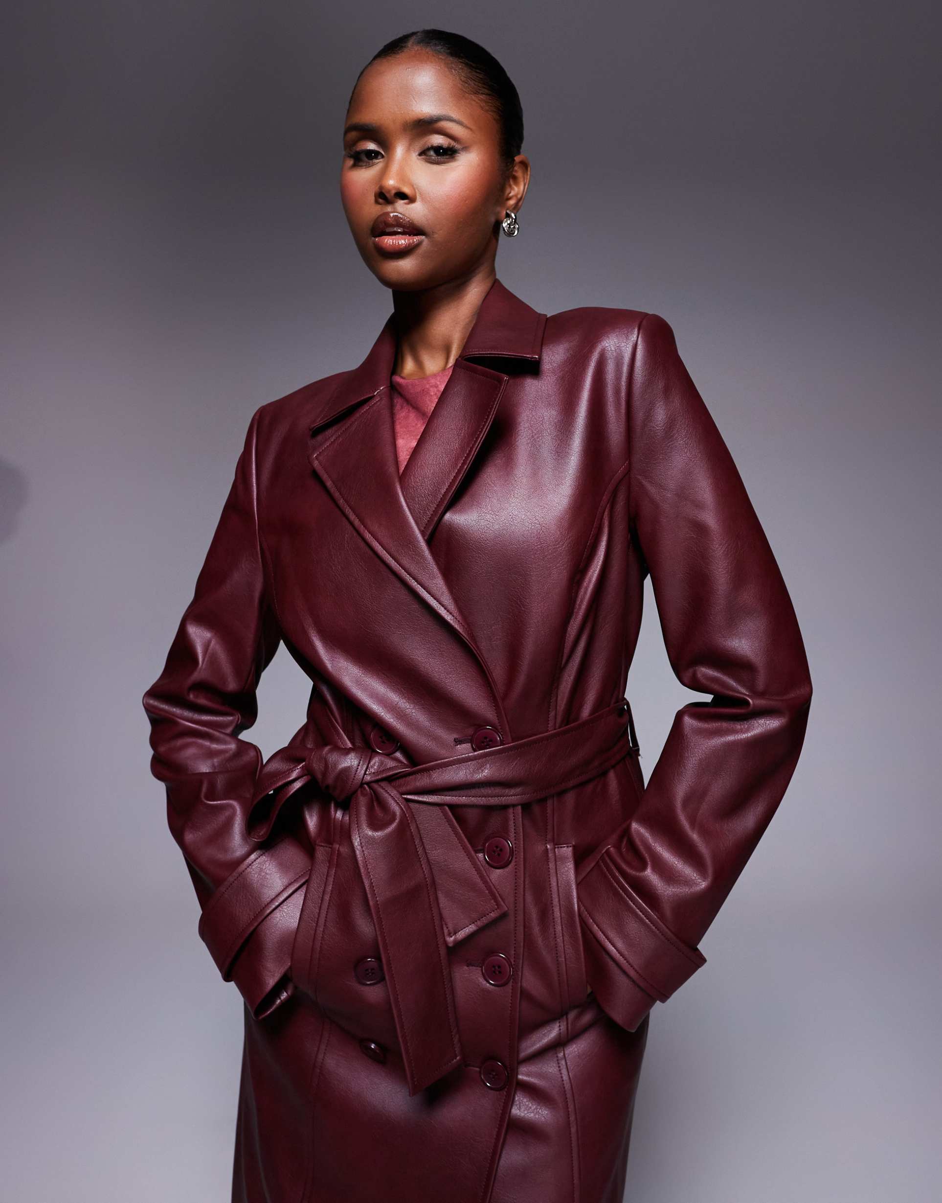 dark burgundy single-breasted coat