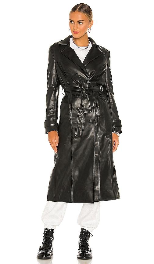 BARDOT FAUX LEATHER TRENCH COAT IN BLACK.