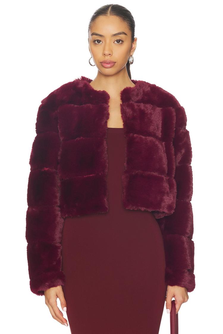 burgundy faux fur outerwear