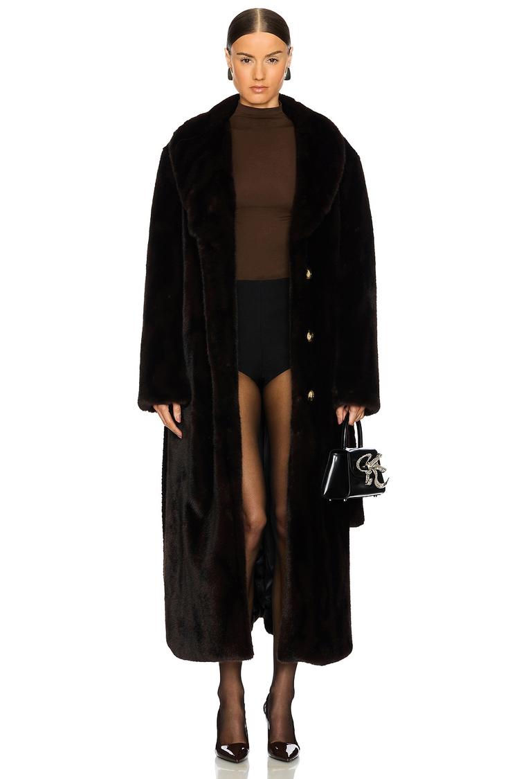 This elegant calf-length faux fur overcoat features a classic notch lapel collar and long regular sleeves, delivering both warmth and style for autumn and winter seasons. Crafted from heavyweight polyester faux fur, it showcases a regular fit with a belted waist tie for adjustable shaping and front button closure for a secure fit. Side seam pockets add practicality, while the covered back and solid black color enhance its timeless, sophisticated look. Ideal for casual outings, workwear, and night events, this coat combines luxurious texture with functional design.