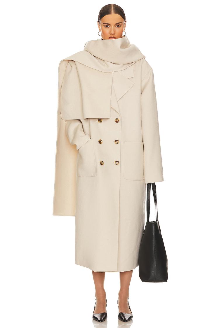 double-breasted overcoat with detachable scarf