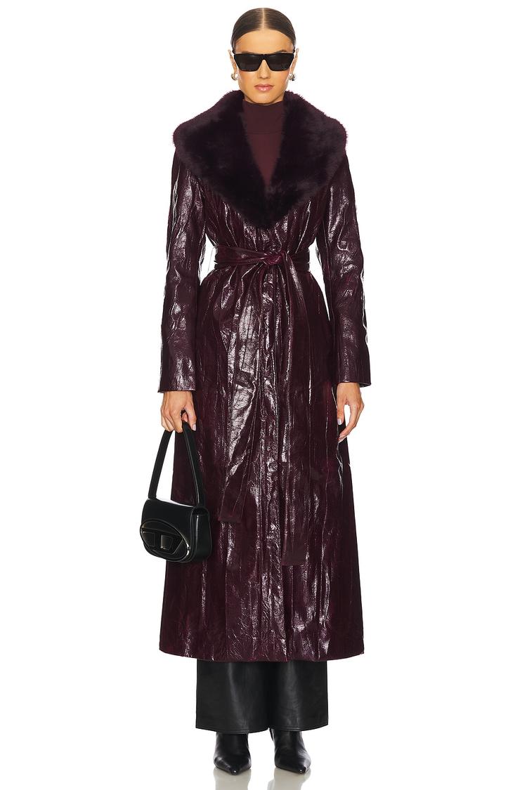 BORDEAUX FAUX FUR COLLAR COAT