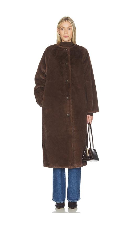 LINE & DOT AXEL FAUX FUR COAT IN BROWN.