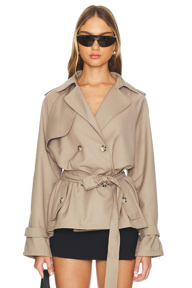 beige notch lapel trench coat