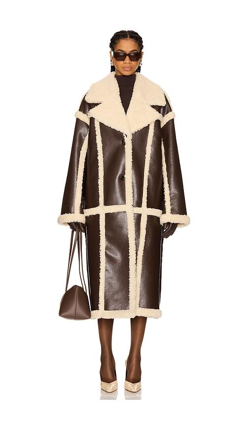 LOVERS AND FRIENDS WAYNE FAUX SHEARLING COAT IN BROWN.