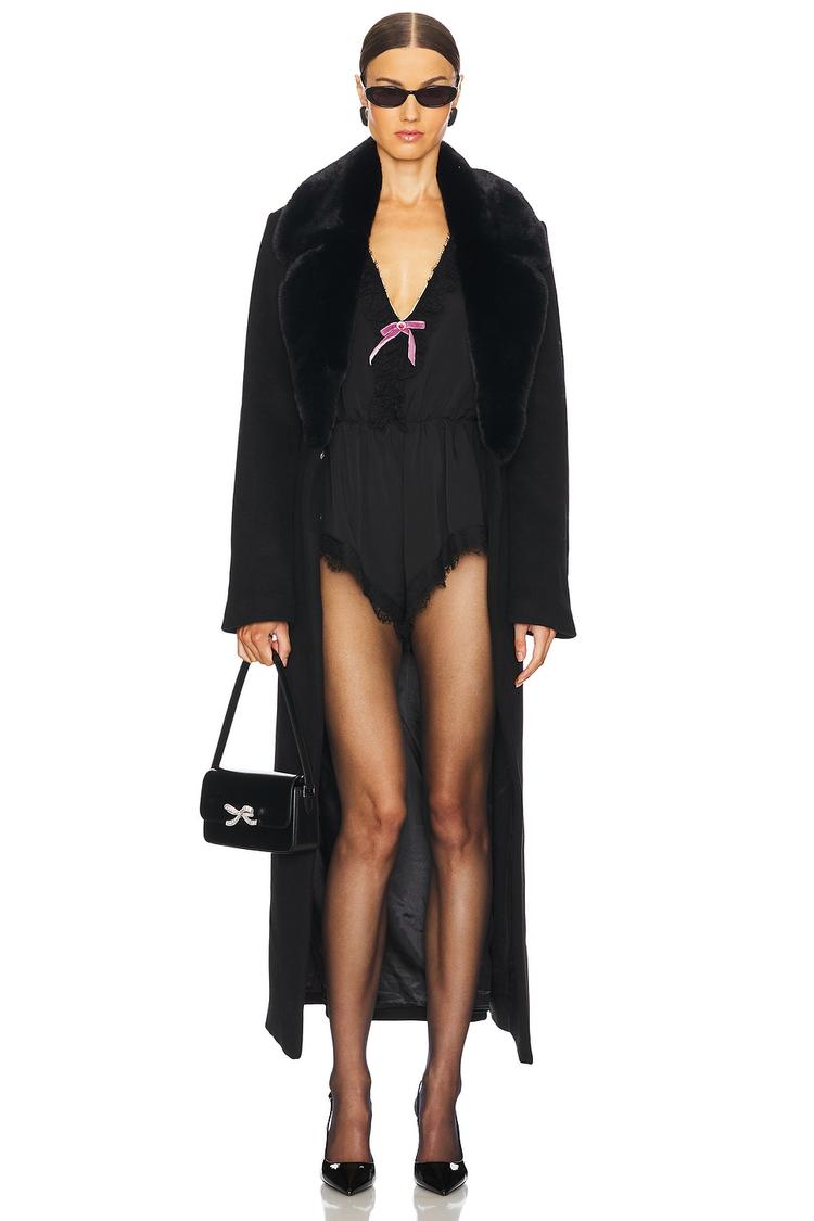 longline coat with faux fur collar