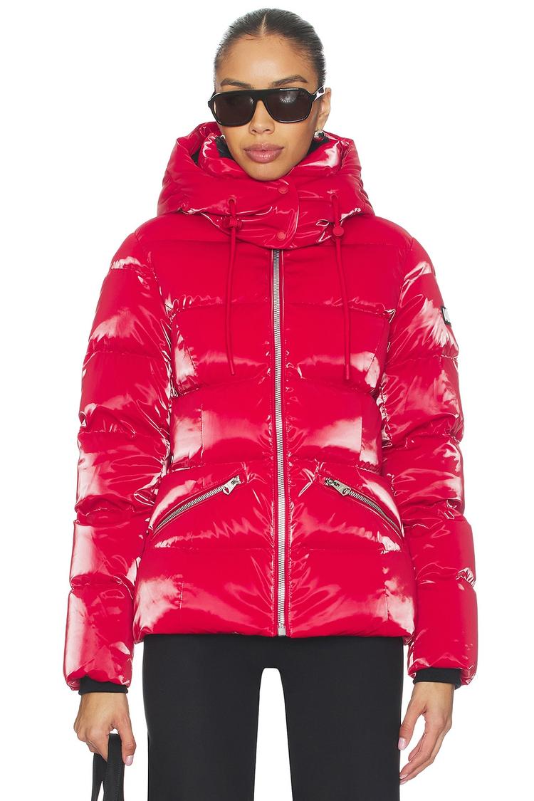 This bright red puffer-quilted jacket features a shiny coated ripstop fabric that offers both style and heavyweight insulation for winter wear. The regular fit and waist-length cut provide comfortable coverage, while the long sleeves with regular styling and a detachable hood with snap button closure ensure practicality. Front exposed zippers on pockets and the main closure add functional flair, complemented by recycled nylon lining and a warm padding blend of recycled down and feathers. Perfect for casual, travel, and streetwear occasions, this modern sporty chic jacket balances warmth and urban style.