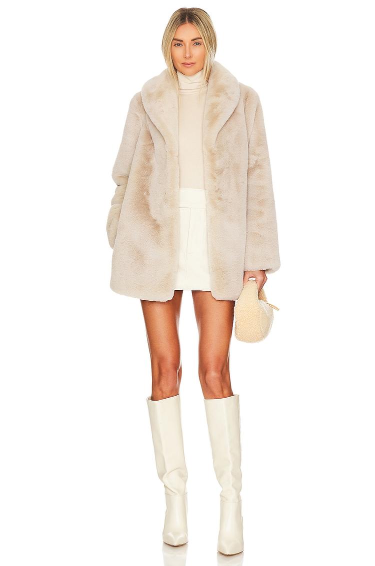 beige faux fur coat for winter layering