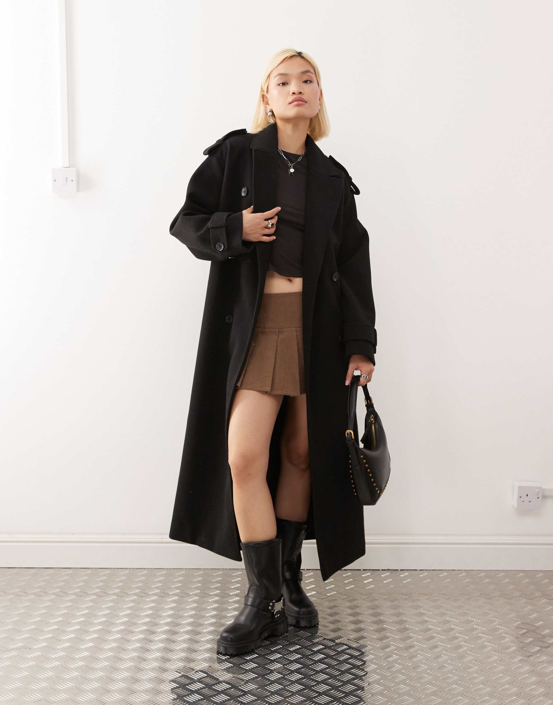MONKI LONGLINE BELTED TRENCH COAT IN BLACK