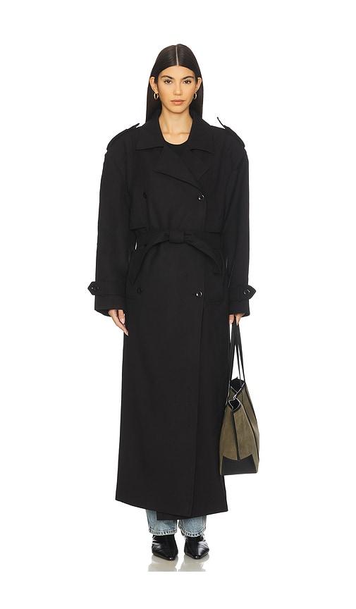 MOTHER OF ALL BROOKLYN LONG TRENCH COAT IN BLACK.
