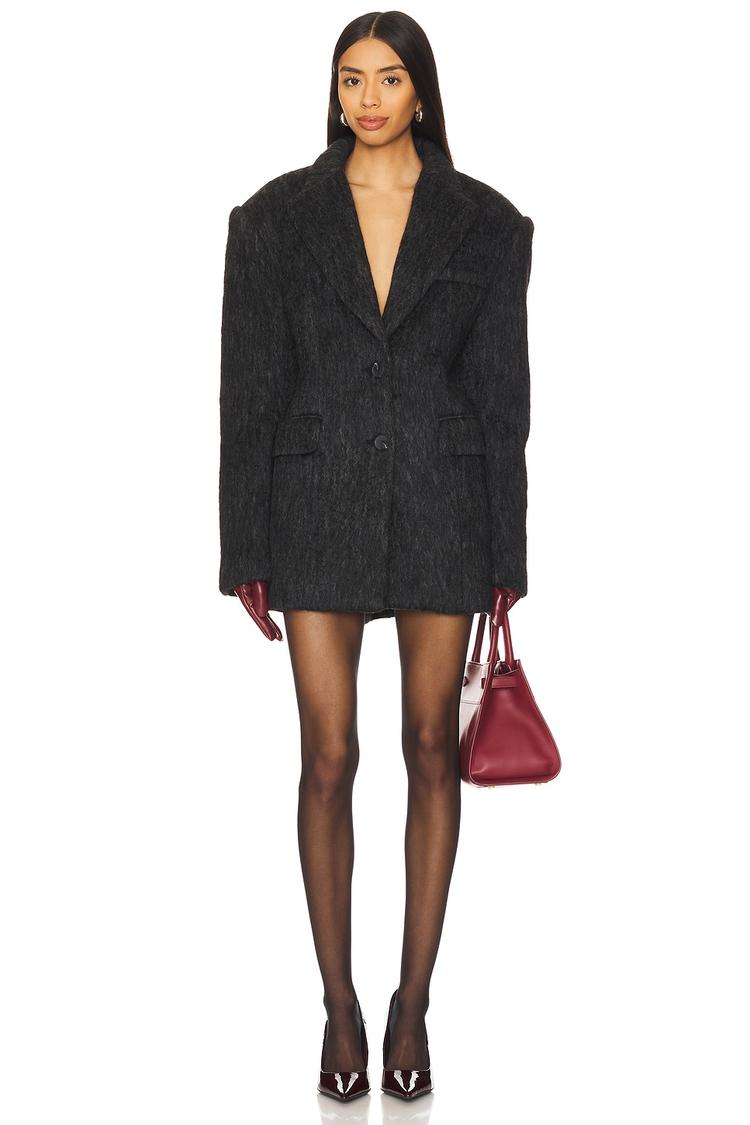 This classic single-breasted faux fur coat in black features a brushed wool blend fabric with a matte finish. It has an oversized fit with long regular sleeves and a notched lapel collar. The thigh-length coat closes with front buttons and includes flap and welt pockets for functional style. Fully lined with polyester, it offers warmth for autumn and winter seasons. Perfect for casual, workwear, and business casual occasions, this coat combines timeless elegance with practical design details for versatile outerwear.