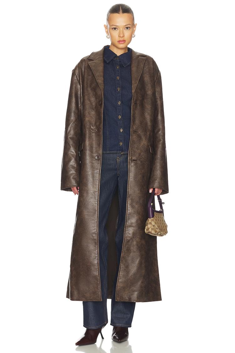 This oversized, calf-length Jasper Coat features a vintage-inspired brown corduroy fabric with a matte finish and subtle panel detailing on the front. Designed with a high collar and a front zip-and-button closure, it offers a relaxed fit with long regular sleeves. The coat is fully lined in polyester for added comfort and durability. Perfect for casual outings, streetwear looks, and travel during autumn through spring, this single-breasted coat combines vintage style with practical layering in a matte brown hue accented by matte black hardware.