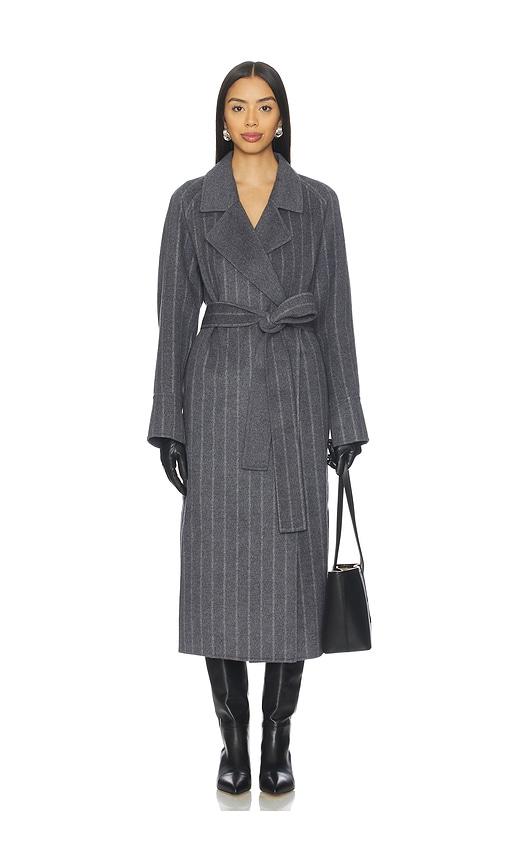 NICHOLAS CANDICE SCARF DOUBLE WOOL LONG COAT IN CHARCOAL.
