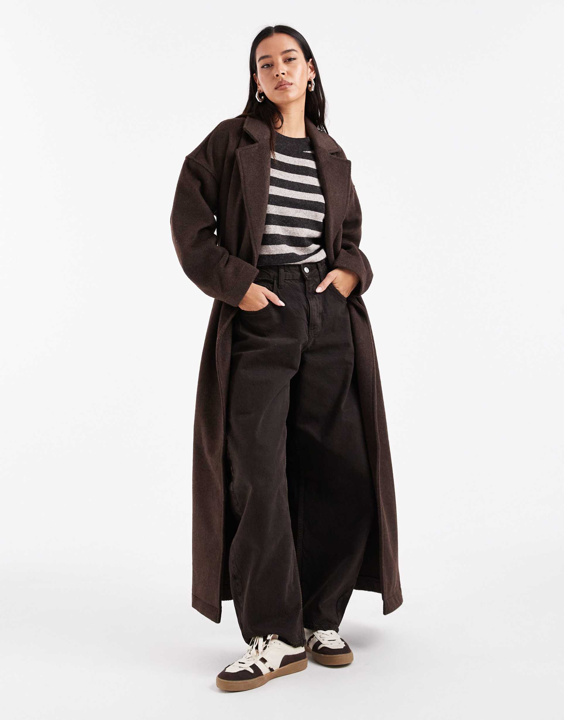 OBJECT PREMIUM WOOL BLEND FORMAL MAXI COAT IN CHOCOLATE BROWN
