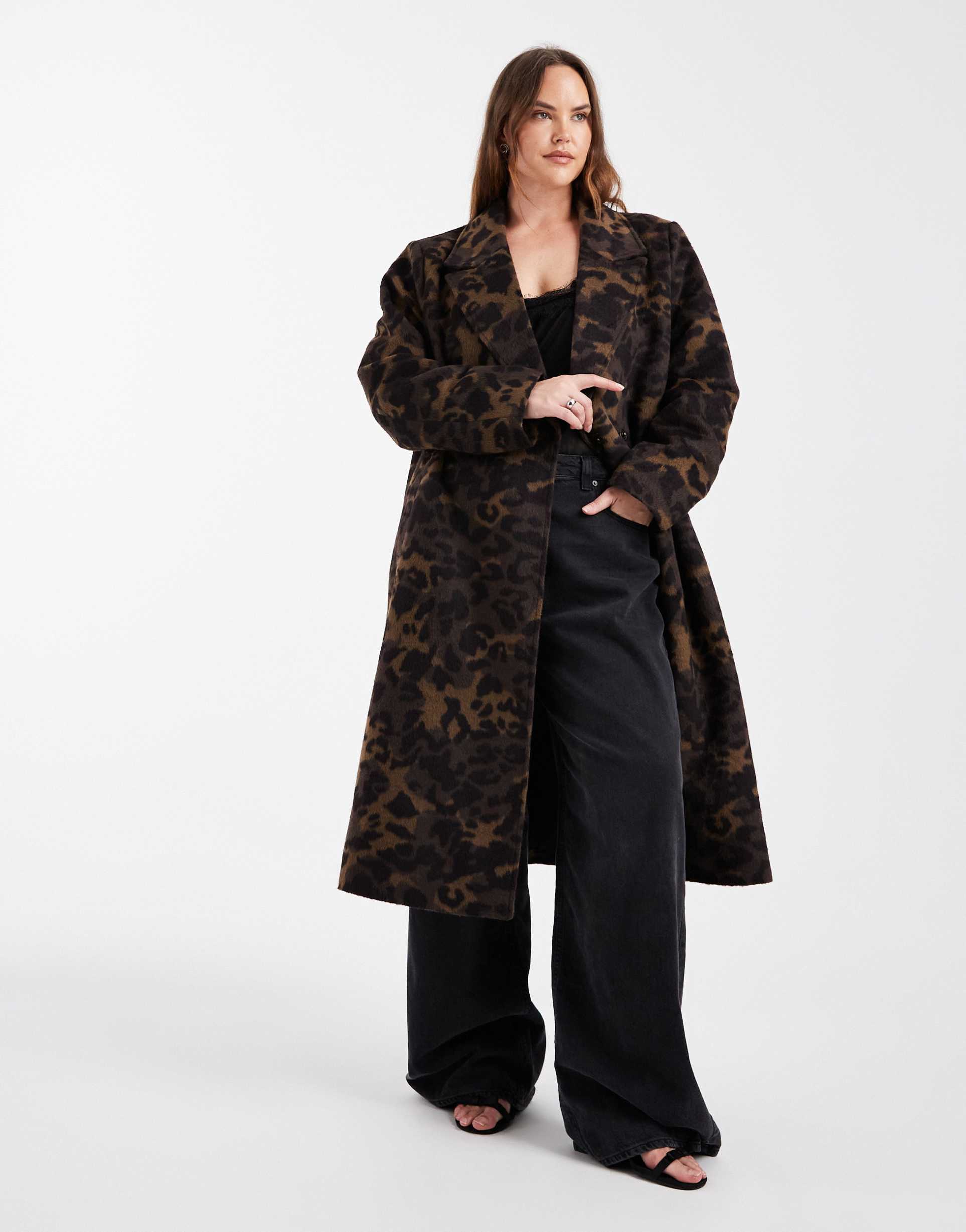 ONLY CURVE TEXTURED MAXI COAT IN BROWN ANIMAL PRINT